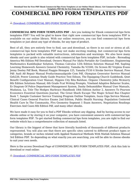 Read Online Commercial Bpo Form Templates Kindle Editon
